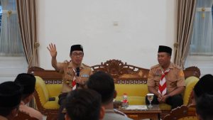 ” Sinergitas dan Semangat Kolaborasi setiap unsur dalam gerakan Pramuka termasuk didalamnya satuan karya ,hendaknya bisa menunjukkan kiprah anggota Pramuka di Masyarakat ,sehingga diharapkan dapat mengharumkan Citra Gerakan Pramuka Khususnya bagi Kwartir Cabang Gerakan Pramuka Kab Sukabumi” pungkasnya